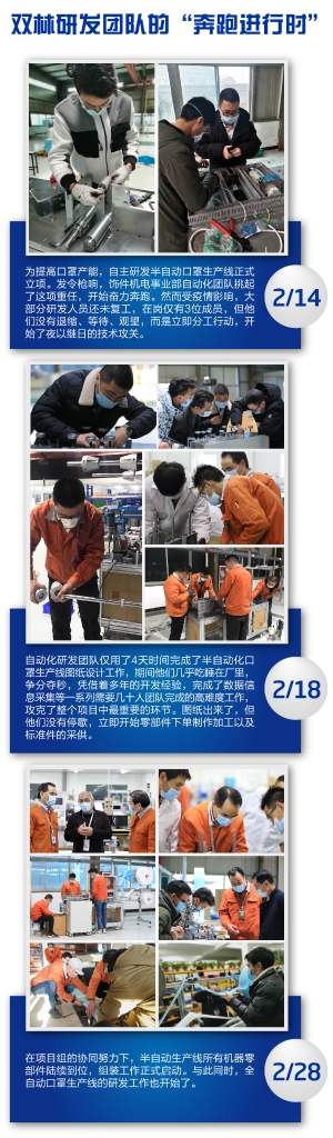 虽然前期无相关资源积累,但是项目组在负责人邬建成的带领下凭借着丰富的经验、专业的技术素养、敢闯敢拼的KAIYUN.COM·开云「中国」官方网站品格,经过不懈奋战与努力,终于攻克下了一个个技术壁垒,完成了半自动口罩生产线的设计、制造、组装、调试、投产,这是一项重要的突破,意味着公司在口罩生产领域实现了往上游延伸,产业链更加完善,具备了口罩设备制造的核心能力。下一步,项目组将把耳线焊接等工艺加入到产线,进一步提升产线自动化程度,逐步淘汰手动生产,以大幅提升口罩生产效率和产品质量。
